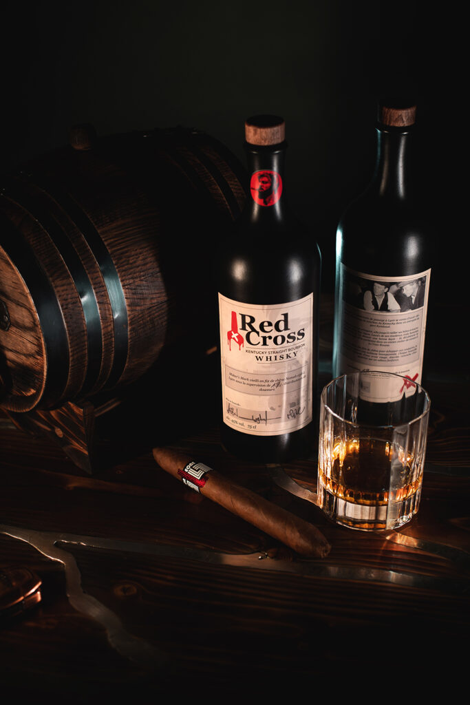 Travailler ce bourbon, c’était prolonger naturellement le travail d’atelier. D’abord façonner le fût lui même: toasté, préparé, marqué, comme on prépare une pièce brute avant de lui donner un sens. Mais le vrai travail, celui qui demande patience et instinct s’est fait avec l’alcool. Comme un forgeron joue avec le feu, j’ai joué avec le bois, la température, le temps. Je n’ai pas laissé vieillir ce bourbon, je l’ai travaillé, je lui ai donné sa forme, sa tension, son caractère.Chaque semaine, chaque dégustation se transformait en geste. Ajuster, surveiller, comprendre ce qu’il devenait. Au final Red Cross porte la même signature que mes pièces métalliques: un objet brut, façonné à la main, guidé par les papilles et le nez et une envie de créer quelque chose qui n’existait pas avant.